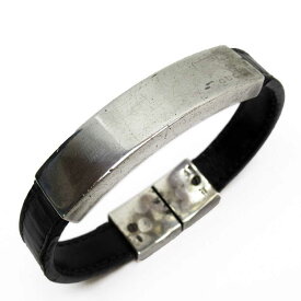 Gucci グッチ レザー切替 シルバーバングル Sv925 メンズ 14g 中古 春の新作シューズ満載 シルバー